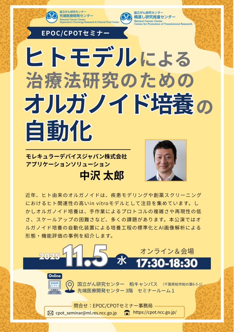 トピックセミナー「ヒトモデルによる治療法研究のためのオルガノイド培養の自動化」開催