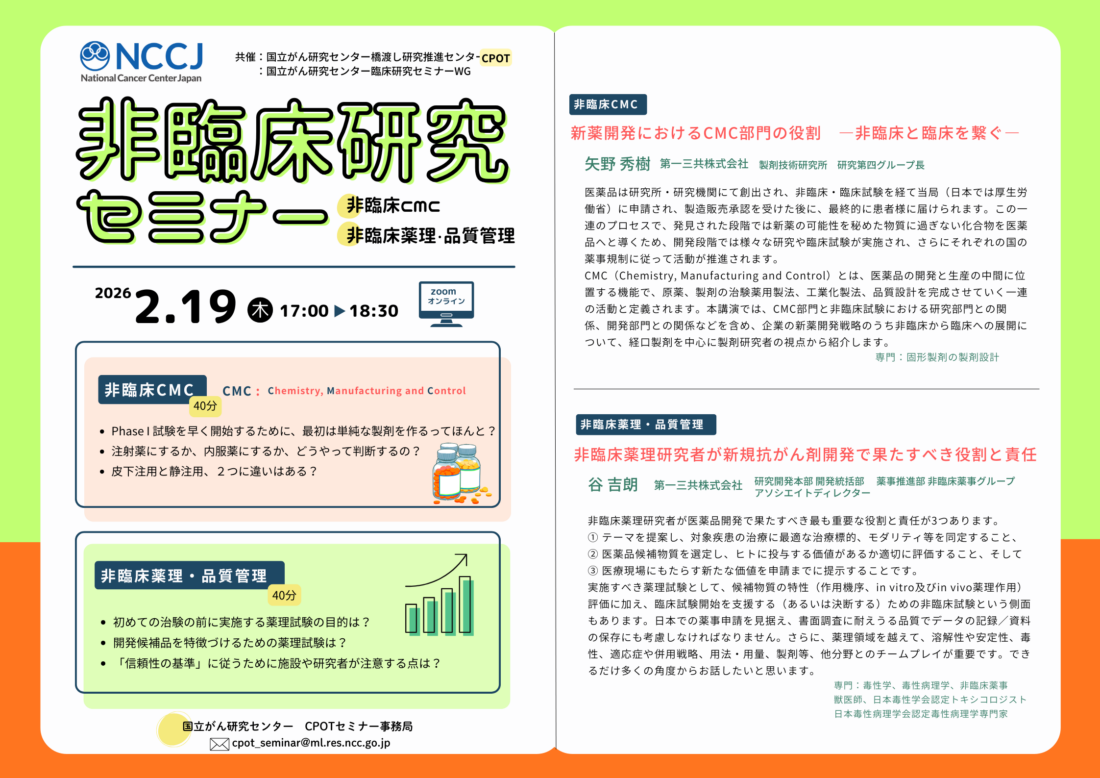 令和7年度 非臨床研究セミナー「非臨CMC、非臨床薬理・品質管理」開催